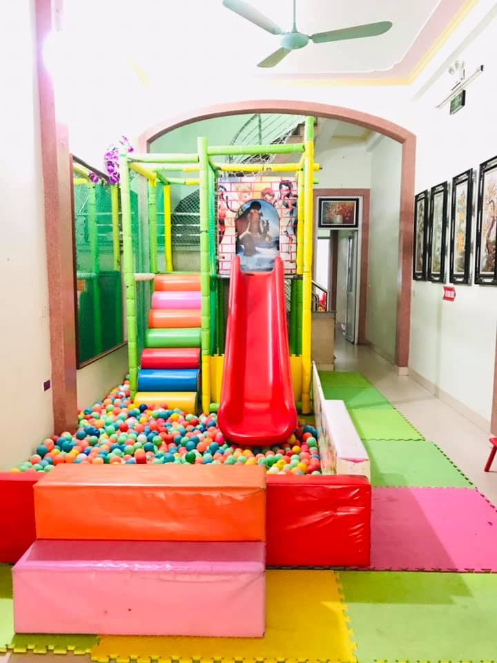 Tầng 1 diện tích 150m trong đó 75m làm khu vui chơi liên hoàn. Tầng 2 gồm 3 phòng. Phòng 1 diện tích 60m2 có nhà vệ sinh khép kín. Phòng 2 diện tích 40m2 có nhà vệ sinh khép kín, phòng 3 diện tích 30m2.